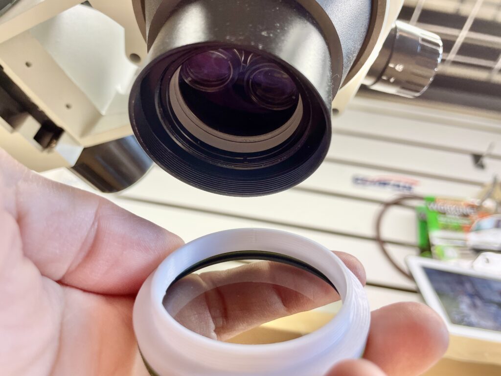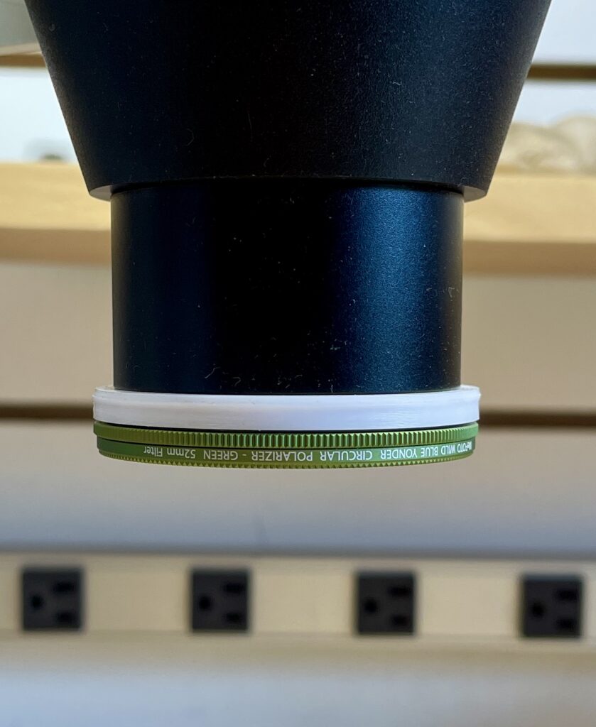 I printed the mount, and while it technically screws into the microscope, mine didn’t thread perfectly and ended up a little loose. Still, it was good enough to hold the filter in place and let me rotate it freely.
